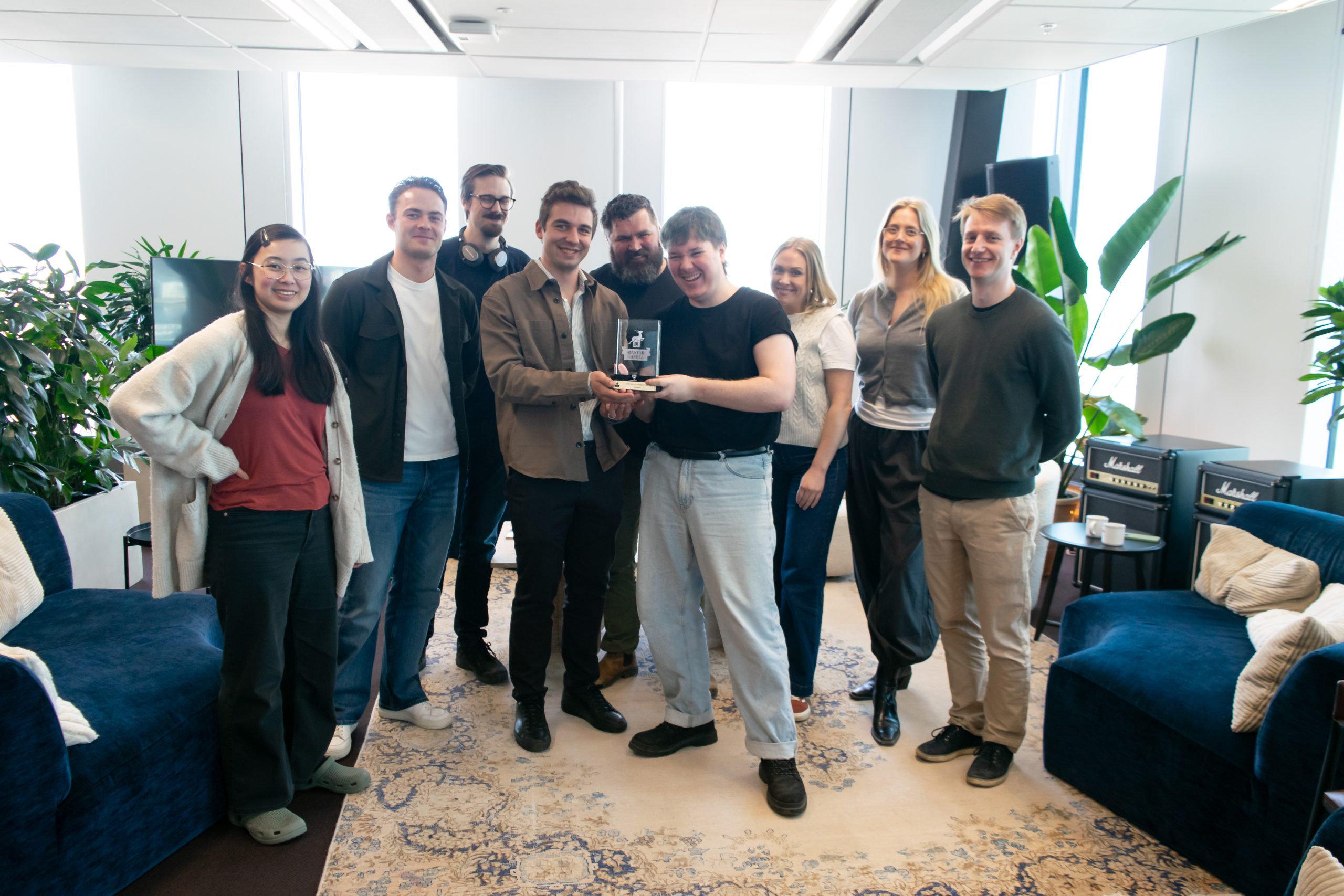 Ett gasellpris är en teaminsats. Här firar några kollegor på kontoret att statyetten äntligen är på plats.